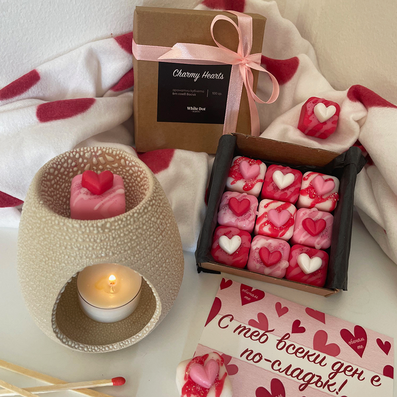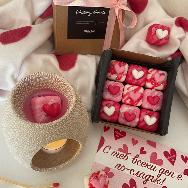 -една кутия ароматни кубчета за топене в арома лампа – CHARMY HEARTS | 100 гр.